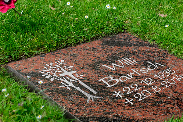 Sie suchen nach dem besonderen, schönen Rasengrabstein für einen einen geliebten Menschen: MEMORUM-Grabmale ist der größte Online – Anbieter von günstigen Sandstrahl gravierten modernen Urnengrabsteinen und Grabeinfassungen bzw. Grabsteine für Ihr Rasengrab aus Naturstein. Wir arbeiten mit Steinmetzen in ganz Deutschland zusammen – sogar viele Bestatter gehören zu unserem Kundenstamm, Bestatter die dann unsere Rasengrabsteine beim Trauerfall Ihren Kunden – Beisetzung gemeinsam mit einer Grabeinfassung von uns als Komplettpaket anbieten können. MEMORUM ist ein Steinmetz Meisterbetrieb, mit 3 Bildhauermeistern, unser Qualitätsanspruch setzt Maßstäbe, besuchen Sie unser Vielfältiges Angebot an Rasengrabplatten für Ihr Rasengrab/Wiesengrab. Auch für Ihr großes Familiengrab wenn später eine Urne zusätzlich beigesetzt wurde, und Sie nicht möchten das der Rasengrabplatten für die zusätzliche Schrift wieder abgebaut werden muss, bietet sich eine Rasengrabplatte von MEMORUM perfekt an. Der Grabstein wird einfach nur in die Erde etwas schräg gelegt, und stellt dann eine würdevolle Grabstätte für Ihren geliebten Menschen dar. Bei uns zählt Qualität. Der günstige Preis resultiert aus der standardisierten Beschriftungstechnik von ausgewählten Schriften, umgesetzt in dauerhafter Sandstrahltechnik oder hochwertigen Metallguss Inschriften. Mit unseren Produkten entscheiden Sie sich für stilsichere und dauerhafte Grabgestaltungen vom Meisterbetrieb, die rationell gefertigt und deshalb so überraschend günstig sind.